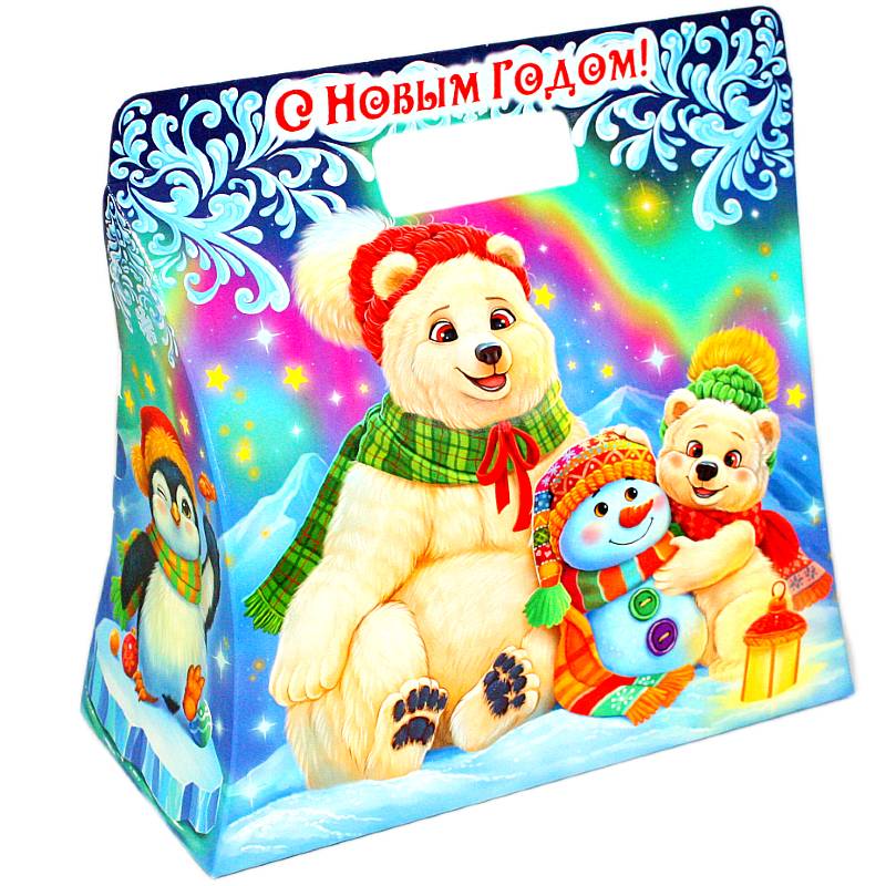 Детский новогодний подарок в картонной упаковке весом 1200 грамм